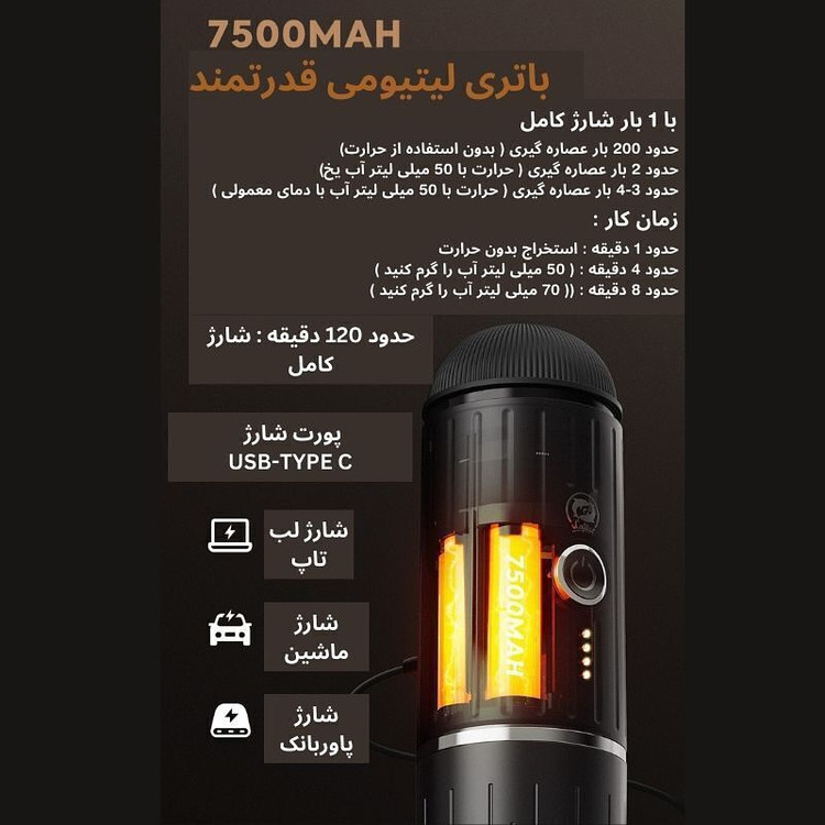 معرفی مینی پرسو شارژی دوکاره ایکافیلاس: قابل حمل تهیه قهوه اسان باطری لیتیومی( قابل شارژ با برق لبتاب و فندک ماشین ) کیفیت ساخت بسیار بالا تولید:چین تهیه قهوه با اب سرد و گرم عمل عصاره گیری از کپسول نسپرسو و پودر قهوه موجود در رنگ مشکی و قرمز مینی پرسو شارژی دوکاره ایکافیلاس با قابلیت استفاده از پودر قهوه و همچنین کپسول قهوه نسپرسو از بهترین مینی پرسو های موجود در بازار است که ساخت چین و دارای کیفیت ساخت بسیار الی میباشد. با استفاده از این مینی پرسو در هر جایی میتوان به راحتی قهوه اسپرسو تهیه کنید بدون این که به اب جوش نیاز داشته باشید. نکته:در صورتی که اب جوش داخل مخزن میریزید فقط کافی است دکمه را یک بار فشار دهید تا عمل عصاره گیری شروع شود و در صورتی که داخل مخزن اب سرد ریخته اید دکمه را به مدت 2 ثانیه فشار دهید تا ابتدا اب به جوش اید و سپس عمل عصاره گیری شروع شود. این دستگاه با فشار بالای در حدود 19 بار قهوه را عصاره گیری میکند. زمان عصاره گیری: در صورتی که نیاز به جوش اوردن اب نباشد عمل عصاره گیری برای تهیه قهوه 1 دقیقه طول میکشد. زمانی که لیتر اب داخل مخزن بریزید عمل عصاره گیری 4 دقیقه به طول می انجامد. در صورتی که 70 میلی لیتر اب داخل مخزن بریزید حدود 8 قیقه زمان میبرد تا قهوه تهیه شود نکته:باطری این قهوه ساز لیتیومی است و برای شارژ کامل در زمان تخلیه کامل حدود 2 ساعت زمان نیاز است شست شو: برای شست شو جزا فقط از اب ولرم یا سرد استفاده نماییید. برای تمیز کردن داخل دستگاه کافی است تا اب سرد را داخل مخزن بریزید و بدون اینکه قهوه داخل ان بریزید به صورت خالی دکمه عصاره گیری را فشار دهید تا اب از ان خارج شود. قهوه ساز شارژی مسافرتی: این قهوه ساز به دلیل پرتابل بودن و عمر بالا و همچنین تهیه قهوه با کیفیت بسیار بالا بدون نیاز به اب جوش به عنوان بهترین اسپرسوساز شارژی محسوب می شود . برای و ثبت پاسخگو هستیم : @miladtajhiz.bnd @miladtajhiz.bnd @miladtajhiz.bnd و یا شماره تماس و واتساپ 09179530052 : بندرعباس چهارراه قدس ب سمت ۲۲ بهمن نبش کوچه ی قدس ۲۳ #نانوپرسو#قهوهکپسولی#قهوهسازکپسولی#نسپرسو#ایکافیلاس#