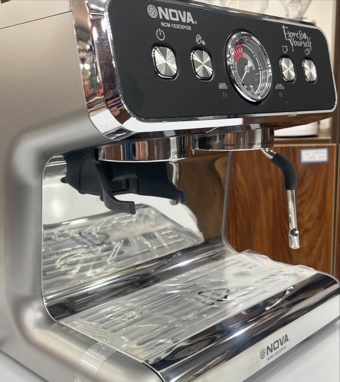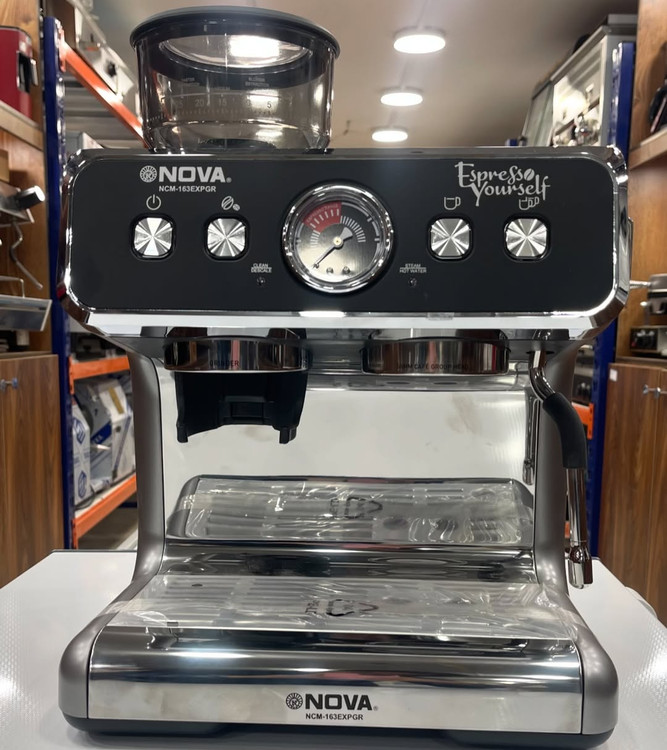 معرفی دستگاه اسپرسو نیمه صنعتی آسیاب سر خود نوا ۱۶۳ : نیمه صنعتی آسیاب سرخود توان فشار 20 بار دارای دو بویلر نوع بسکت :غیر تحت فشار قابلیت لاته ارت دارد جنس تیغه آسیاب: فولاد ضدزنگ نوع تیغه آسیاب مخروطی ( کونیکال ) خاموشی خودکار دارد گرم کن فنجان دارد سایز سایز ۵۸ حجم هاپر 250 گرم ظرفیت مخزن آب:2.8 لیتر جنس بدنه:استیل اقلام همراه:بسکت سینگل و دبل, پیچر استیل, تمپر استیل, فرچه مناسب:سوپرمارکت ها, منزل ۲۳ #نوا۱۶۳#نیمهصنعتی#اسیابسرخود#
