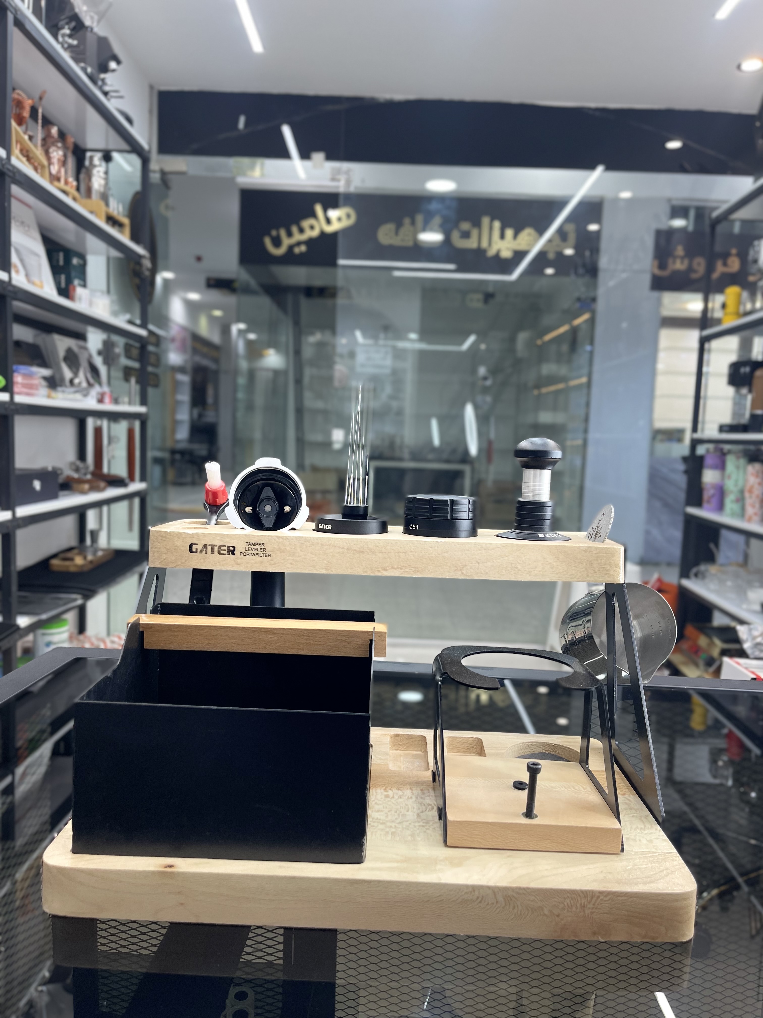 استند پرتافیلتر چوبی دو طبقه ناک باکس دار
